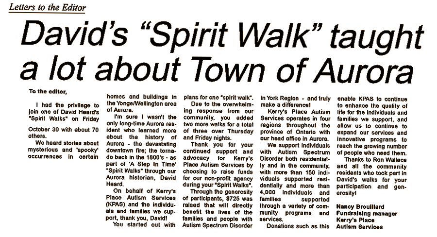 A proud lifelong Auroran David's family roots trace back to the early 1800s with research uncovering an erie connection to the Ghost of the St. Lawrence Market.