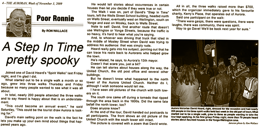 Recipient of the Town of Aurora's 2014 Heritage Excellence Award David has conducted regular walking tours of Aurora over the past decade.